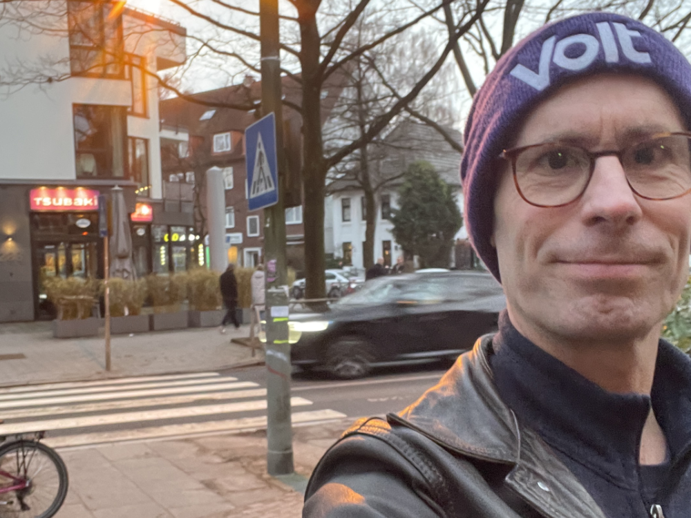 „Wir kümmern uns um sensible Orte im Verkehrsgeschehen – dort, wo viele Menschen zu Fuß unterwegs sind und Kinder und Senior*innen besonders betroffen sind. Rund um den Knoten gibt es ÖPNV-Zugänge, Buslinien, eine Kita, Gastronomie und Einzelhandel. Genau an solchen Stellen braucht es Tempo-30.“ — Dr. Jörg Bormann, Regionalbeauftragter der Volt-Fraktion in der Bezirksversammlung Hamburg-Nord